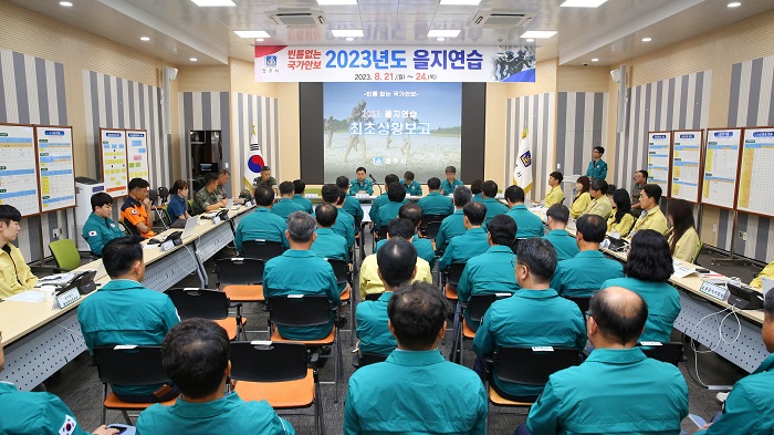 ÁÖ³«¿µ ½ÃÀåÀº 21ÀÏ Ã»»ç ³» ´ëȸÀǽǿ¡¼ ¿¸° ‘2023³â À»Áö¿¬½À ÃÖÃÊ »óȲº¸°í ȸÀÇ’¿¡¼ “¾Èº¸´Â ÀûÀÇ °ø°ÝÀ¸·Î ºÎÅÍ ±¹°¡¸¦ ÁöŰ´Â °ÍÀÌÀÚ, ±¹¹Î°ú ½Ã¹ÎÀÇ ¾ÈÀü°ú »îÀ» ÁöŰ´Â °Í”À̶ó¸ç ½ÇÀü °°Àº ¸¶À½À¸·Î ÈÆ·Ã¿¡ öÀúÈ÷ ÀÓÇØ´Þ¶ó°í ´çºÎÇß´Ù.