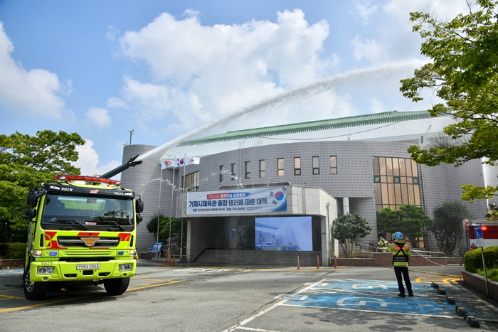 [½Ã»çÄÚ¸®¾ÆÀú³Î=Á¤Á¾¹Î ¼±ÀÓ±âÀÚ] °ÅÁ¦½Ã´Â 22ÀÏ ¿ÀÈÄ 2½Ã °ÅÁ¦½ÃüÀ°°ü¿¡¼ ¹ÚÁ¾¿ì °ÅÁ¦½ÃÀåÀ» ºñ·ÔÇÑ À¯°ü±â°ü·´Üü µî 150¿© ¸íÀÌ Âü¿©ÇÑ °¡¿îµ¥ 2023³â À»Áö¿¬½À ½ÇÁ¦ÈÆ·ÃÀ» ½Ç½ÃÇß´Ù.