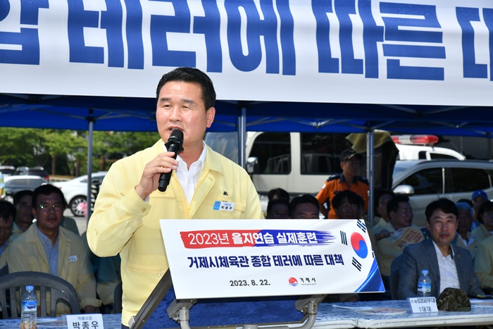 | ¹ÚÁ¾¿ì °ÅÁ¦½ÃÀåÀÌ °ÅÁ¦½Ã´Â 22ÀÏ ¿ÀÈÄ 2½Ã °ÅÁ¦½ÃüÀ°°ü¿¡¼ 2023³â À»Áö¿¬½À ½ÇÁ¦ÈÆ·ÃÀ» ÁÖ°üÇϰí ÀÖ´Ù. |