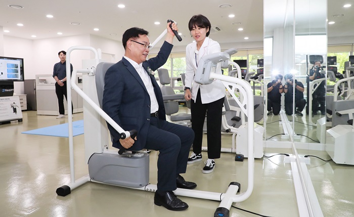 | È«³²Ç¥ â¿øÆ¯·Ê½ÃÀåÀÌ 24ÀÏ ÁذøÇÑ ‘»çÆÄ º¹ÇÕ°ø¿µÁÖÂ÷Àå’¿¡ ¸¶·ÃµÈ °Ç°ÁõÁøÀ» À§ÇÑ ¿îµ¿½Ã¼³À» Á÷Á¢ üÇèÇØ º¸°í ÀÖ´Ù. |