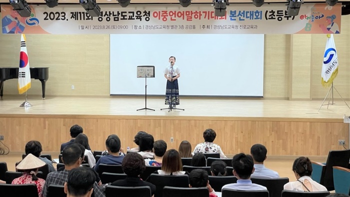 À̳¯ ¿¸° 2023³â ÀÌÁß¾ð¾î¸»Çϱâ´ëȸ´Â ÀÌÅ»¸®¾Æ¾î¿Í Çѱ¹¾î¸¦ À¯Ã¢ÇÏ°Ô Ç¥ÇöÇÑ ³ë ¾Æ¹«°³ Çлý»Ó¸¸ ¾Æ´Ï¶ó, Áß±¹¾î, ÀϺ»¾î, ·¯½Ã¾Æ¾î, Çʸ®Çɾî, ¸ù°ñ¾î µî 7°³±¹ ¾ð¾î¸¦ ±¸»çÇÏ´Â °æ³² Áö¿ª ÀÌÁß¾ð¾î ÀÎÀç¿Í °¡Á·ÀÌ ÇÑÀÚ¸®¿¡ ¸ðÀÎ ÃàÁ¦ÀÇ ÀåÀ̾ú´Ù.