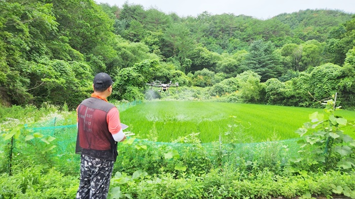 ‘ºÏ¸é ³ó¾÷ÀÎÀ» À§ÇÑ º º´ÃæÇØ °øµ¿¹æÁ¦ Áö¿ø’ »ç¾÷Àº ¹«ÀÎ µå·ÐÀ» Ȱ¿ëÇÏ¿© º´ÃæÇØ ¹æÁö ¾àÁ¦¸¦ »ìÆ÷ÇÏ´Â »ç¾÷À¸·Î, Àû±â ¹æÁ¦¸¦ ÅëÇÑ °íǰÁú ½Ò »ý»ê°ú °í·ÉÈ¿¡ µû¸¥ ³ó°¡ ÀÏ¼Õ ºÎÁ·À» ÇØ¼ÒÇϰíÀÚ ½ÃÇàÇÏ¿´´Ù.