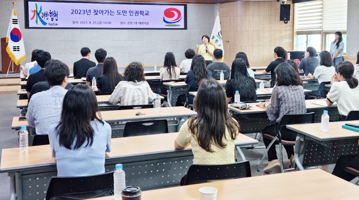 ‘ã¾Æ°¡´Â µµ¹Î ÀαÇÇб³ ±³À°’Àº ¡¸°æ»ó³²µµ ÀαǺ¸Àå Á¶·Ê¡¹ ¹× ¡¸°æ»ó³²µµ ÀαǺ¸Àå ¹× ÁõÁø ±âº»°èȹ¡¹¿¡ µû¶ó °øÁ÷ÀÚÀÇ Àαǿ¡ ´ëÇÑ ÀÌÇØ¿Í °ü½ÉÀ» ³ôÀ̱â À§ÇØ 2021³âºÎÅÍ ¸Å³â ½ÃÇàÇØ ¿À°í ÀÖ´Â ±³À°ÀÌ´Ù.