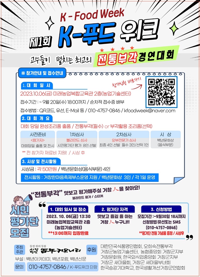 ½ÅûÀº 9¿ù 20ÀÏ ¿ÀÈÄ 6½Ã±îÁö ÀüÀÚ¿ìÆí(Kfoodweek@naver.com), ÀüÈ(010-4757-0846), È«º¸ Æ÷½ºÅÍ ³» 2Â÷¿ø ¹ÙÄÚµå(QRÄÚµå)¸¦ ÅëÇØ ÇÒ ¼ö ÀÖÀ¸¸ç, Á¢¼öÁõÀº ¼øÂ÷ÀûÀ¸·Î ¹èºÎµÈ´Ù.