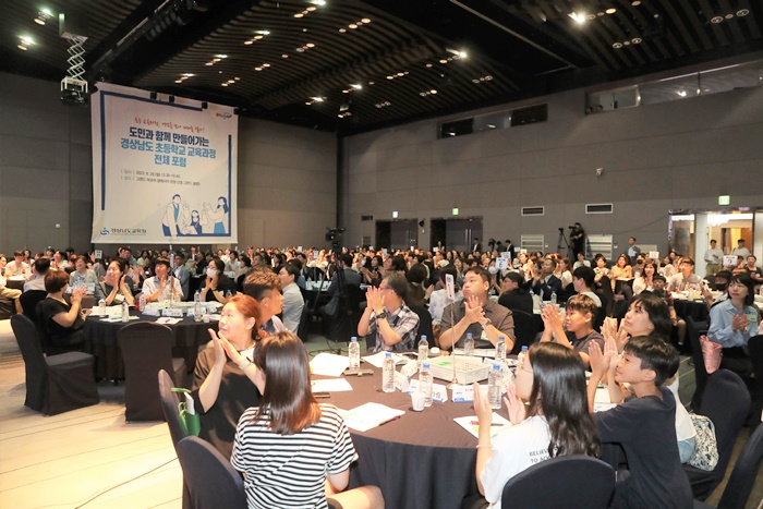 [½Ã»çÄÚ¸®¾ÆÀú³Î=Á¤Á¾¹Î ¼±ÀÓ±âÀÚ] °æ³²µµ±³À°Ã»(¹ÚÁ¾ÈÆ ±³À°°¨)Àº 28ÀÏ ±×·£µå ¸ÓÅ¥¾î ¾Ú¹è¼´õ â¿ø¿¡¼ Çлý, Çкθð, ±³¿ø µî 280¿© ¸íÀÌ Âü¼®ÇÑ °¡¿îµ¥ ‘µµ¹Î°ú ÇÔ²² ¸¸µé¾î °¡´Â ÃʵîÇб³ ±³À°°úÁ¤ °æ³² Àüü °ø°³ Åä·Ðȸ’¸¦ ¿¾ú´Ù.