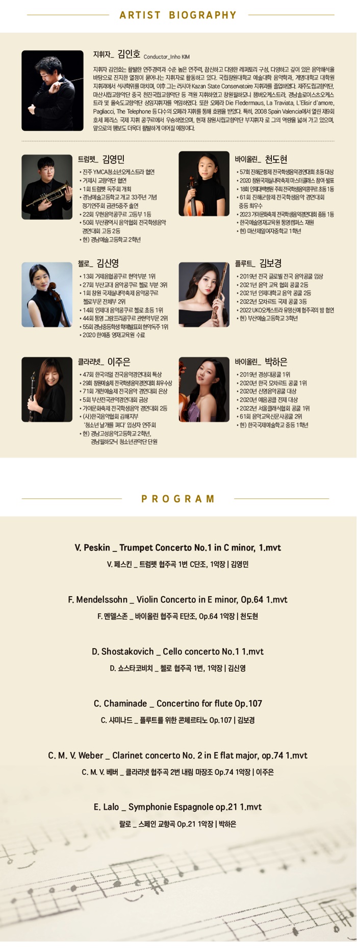 À̳¯ ¿¬ÁֵǴ °îÀº ¢ºÆä½ºÅ²ÀÇ Æ®·³Æê ÇùÁÖ°î 1¹ø C´ÜÁ¶ 1¾ÇÀå(±è¿µ¹Î) ¢º¸àµ¨½ºÁ¸ÀÇ ¹ÙÀ̿ø° ÇùÁÖ°î E´ÜÁ¶ Op.64 1¾ÇÀå(õµµÇö) ¢º¼î½ºÅ¸ÄÚºñÄ¡ÀÇ Ã¿·Î ÇùÁÖ°î 1¹ø 1¾ÇÀå(±è½Å¿µ) ¢º»þ¹Ì³ªµåÀÇ ÇÃ·çÆ®¸¦ À§ÇÑ ÄÜü¸£Æ¼³ë Op.107(±èº¸°æ) ¢ºº£¹öÀÇ Å¬¶ó¸®³Ý ÇùÁÖ°î 2¹ø ³»¸² ¸¶ÀåÁ¶ Op.74 1¾ÇÀå(ÀÌÁÖÀº) ¢º¶ö·ÎÀÇ ½ºÆäÀÎ ±³Çâ°î Op. 21 1¾ÇÀå(¹ÚÇÏÀº) µî 6°îÀÌ´Ù.