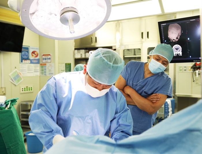¸ù°ñ ±¹¸³Æ®¶ó¿ì¸¶¼¾ÅÍ ½Å°æ¿Ü°ú ¼¾ÅÍÀåÀÌ °í½Å´ëº´¿ø¿¡¼ ¿¬¼ö¸¦ ¹ÞÀ¸¸ç ¼ö¼úÀå¸éÀ» Âü°üÇϰí ÀÖ´Ù. |