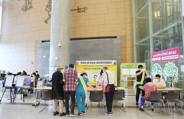 À̹ø Ä·ÆäÀÎÀº »ê¾÷¾ÈÀüº¸°Ç¹ý¿¡ ÀǰÅÇÏ¿© °¨Á¤³ëµ¿±Ù·ÎÀÚ¸¦ º¸È£ÇϰíÀÚ º´¿ø ³»¿ø°´, ȯÀÚ, º¸È£ÀÚ µîÀ» ´ë»óÀ¸·Î °¨Á¤³ëµ¿ÀÚÀÎ º´¿ø Á÷¿ø¿¡ ´ëÇÑ Àνݳ¼±°ú °¨Á¤³ëµ¿ÀÚ ÀαǺ¸È£ ¹× Á¸Áß¹®È È®»êÀ» À§ÇØ ÁøÇàµÆ´Ù.