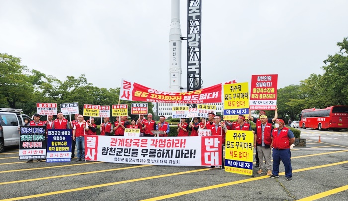 [½Ã»çÄÚ¸®¾ÆÀú³Î=Á¤Á¾¹Î ¼±ÀÓ±âÀÚ] Ȳ°±¤¿ªÃë¼öÀå °ü·Ã ÇÕõ±º¹Î´ëÃ¥À§¿øÈ¸(À§¿øÀå ¿©ÇÑÈÆ·ÀÌÁ¾Ã¶)´Â 1ÀÏ ´ëÃ¥À§¿ø°ú ÇÕõ±ºÀÇȸ ÀÇ¿ø 50¿©¸íÀº °æ³²µµÃ» Á¤¹® ¾Õ¿¡¼ Ãë¼öÀå ¼³Ä¡»ç¾÷ Áß´Ü ¹Ý´ëÁýȸ¸¦ ¿¬ µÚ Ȳ° ±¤¿ªÃë¼öÀå ÇÕõÁö¿ª ¿ë¿ª Á¦¿Ü ¿ä±¸¿Í ÇÕõ±º Ãë¼öÀå ¼³Ä¡ ¹Ý´ë ÀǰßÀ» Àü´ÞÇϱâ À§Çؼ µµÃ»À» Ç×ÀÇ ¹æ¹®Çß´Ù.