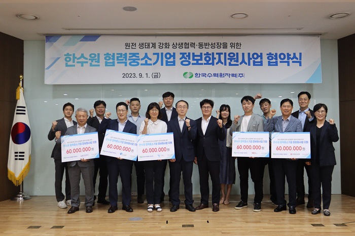 [½Ã»çÄÚ¸®¾ÆÀú³Î=°æºÏÃëÀ纻ºÎ] Çѱ¹¼ö·Â¿øÀÚ·Â(»çÀå ȲÁÖÈ£, ÀÌÇÏ ÇѼö¿ø)ÀÌ 1ÀÏ ÆÇ±³ À̳ëºñÁîÇùȸ¿¡¼ Çù·ÂÁß¼Ò±â¾÷ÀÇ Á¤º¸È »ç¾÷À» Áö¿øÇϱâ À§ÇÑ ‘23³âµµ Á¤º¸ÈÁö¿ø»ç¾÷ Çù¾à½Ä’À» °³ÃÖÇß´Ù.
