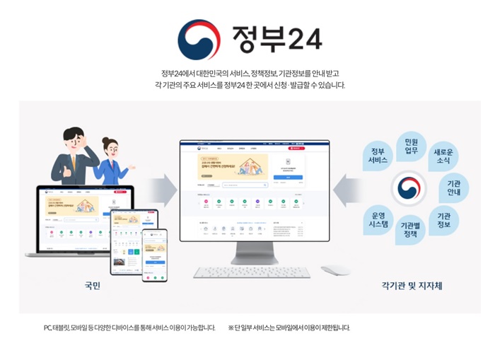 ÀÌó·³ ‘Á¤ºÎ24’´Â ±º¹Î ´©±¸³ª ÇàÁ¤±â°ü ¹æ¹® ¾øÀÌ ¾îµð¼³ª 24½Ã°£ 365ÀÏ ÇÊ¿äÇÑ ¹Î¿øÀ» ¾È³»¹Þ°í, ½ÅûÇϰí, ¹ß±Þ·¿¶÷ÇÒ ¼ö ÀÖ´Â ¼ºñ½º´Ù.