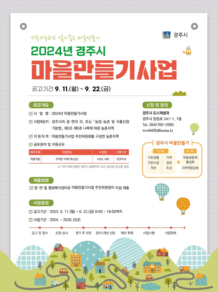 [½Ã»çÄÚ¸®¾ÆÀú³Î=°æºÏÃëÀ纻ºÎ] °æÁֽð¡ ‘2024³â °æÁֽà ¸¶À» ¸¸µé±â »ç¾÷’¿¡ Âü¿©ÇÒ ¸¶À»À» ¸ðÁýÇÑ´Ù.