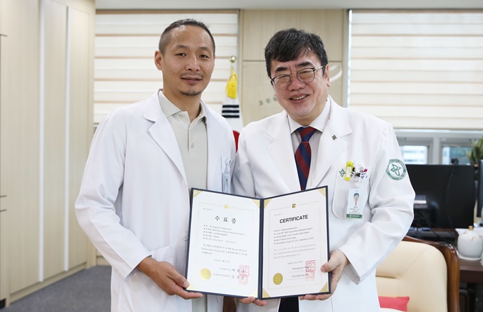 | °í½Å´ëº´¿ø ¿À°æ½Â º´¿øÀåÀÌ ¸ù°ñÆ®¶ó¿ì¸¶¼¾ÅÍ ´Ù°úµ¹ Àǻ翡°Ô ¿¬¼ö ¼ö·áÁõÀ» Àü´ÞÇϰí ÀÖ´Ù. |