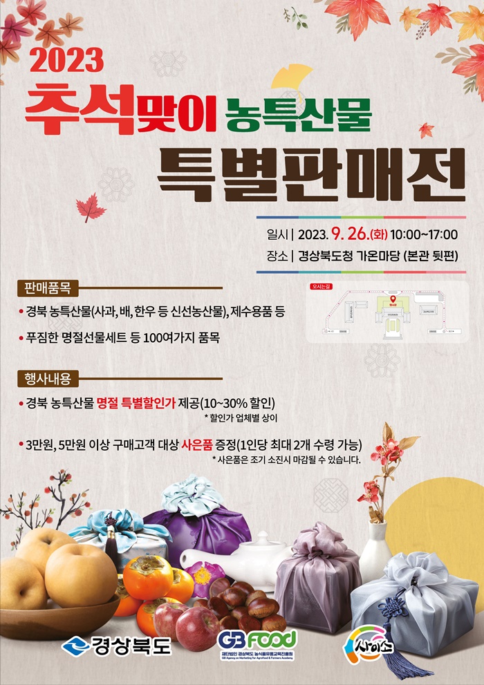 9¿ù 21~24ÀϱîÁö´Â °æÁֽdz»Ã¼À°°ü ¾Õ ŸÀÓĸ½¶ ±¤Àå¿¡¼ Ãß¼®¸ÂÀÌ °æºÏ Å«ÀåÅ͸¦ ¿î¿µÇϰí, 22~24ÀϱîÁö´Â Æ÷Ç× Ã¶±æ½£¿¡¼ °æºÏ ¿ì¼öÇÑ¿ì ³óÆ¯»ê¹°ÀåÅ͸¦ °³ÀåÇÑ´Ù.