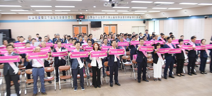 ´ëȸÀǽǿ¡¼ Âü¼®ÀÚµéÀº ‘ÇÏ´ÃÀÌ Á¡ÁöÇÑ Ãµ»ç»ç°ú, ´Ù °°ÀÌ µ¿ÂüÇØ¿ä. °Ñ¸Ú º¸´Ù ¼Ó¸À! °Åâ»ç°ú ÆÄÀÌÆÃ!’À̶ó´Â Ä·ÆäÀÎ ±¸È£¸¦ ¿ÜÄ¡¸ç ³ó°¡¿¡ µû¶æÇÑ À§·ÎÀÇ ¸¶À½À» ÀüÇß´Ù.