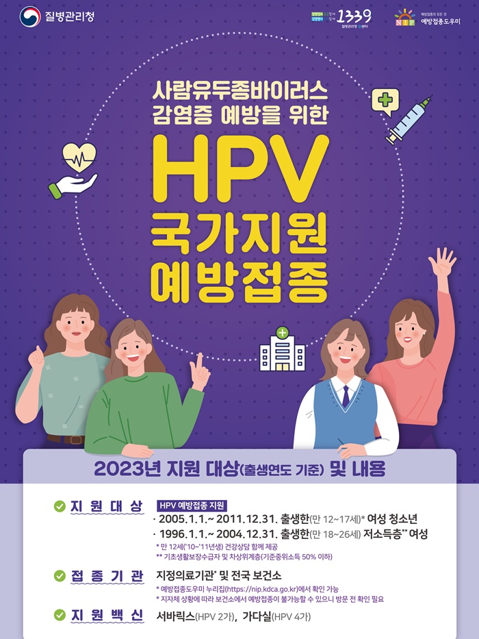¿ÃÇØ HPV ±¹°¡¿¹¹æÁ¢Á¾ Áö¿ø´ë»óÀº ¡ã12~17¼¼ ¿©¼º û¼Ò³â(`05.1.1. ~`11.12.31. Ãâ»ýÀÚ)°ú ¡ã18~26¼¼ Àú¼ÒµæÃþ ¿©¼º(`96.1.1.~`04.12.31. Ãâ»ýÀÚ)ÀÌ´Ù.