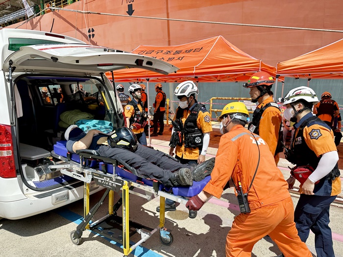 [½Ã»çÄÚ¸®¾ÆÀú³Î=Á¤Á¾¹Î ¼±ÀÓ±âÀÚ] °ÅÁ¦¼Ò¹æ¼(¼Àå ÁÖŵ·)´Â 6ÀÏ ¾ÆÁÖµ¿ ¼ÒÀç ÇÑÈ¿À¼Ç H¾Èº®¿¡¼ °ÇÁ¶ÁßÀÎ ¼±¹Ú ´ëÇüÈÀç ¹× ´Ù¼ö»ç»óÀÚ ¹ß»ý »óȲ¿¡ ´ëÀÀÇϱâ À§ÇÑ ±ä±Þ±¸Á¶ Á¾ÇÕÈÆ·ÃÀ» ½Ç½ÃÇß´Ù.