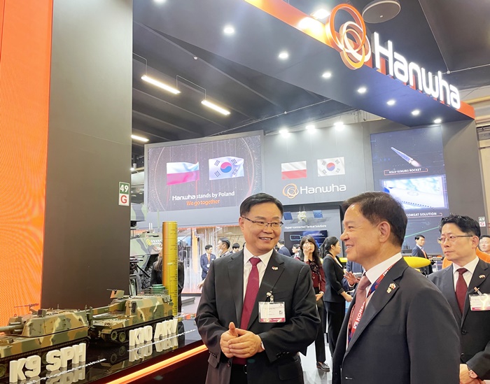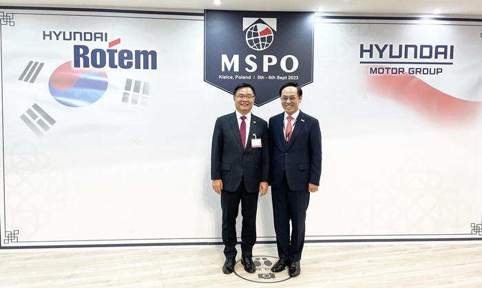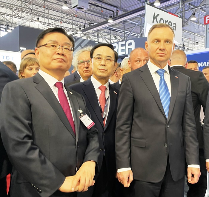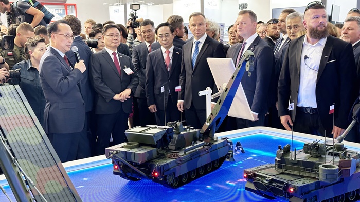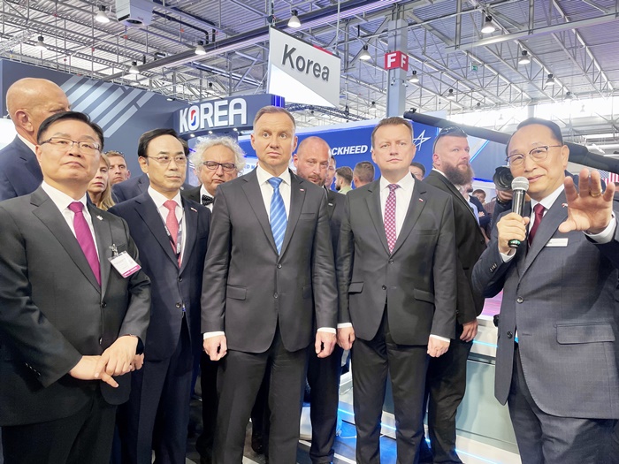 | È«³²Ç¥ â¿øÆ¯·Ê½ÃÀåÀÌ Æú¶õµå Ű¿¤Ã¼¿¡¼ ¿¸®´Â ‘MSPO 2023 ±¹Á¦¹æÀ§»ê¾÷Àü’¿¡ Âü¼®ÇØ Çö´ë·ÎÅÛ ºÎ½º¿¡¼ ¾ÈÁ¦ÀÌ µÎ´Ù Æú¶õµå ´ëÅë·É°ú ÇÔ²² ¼³¸íÀ» µè°í ÀÖ´Ù. /â¿ø½Ã Á¦°ø |