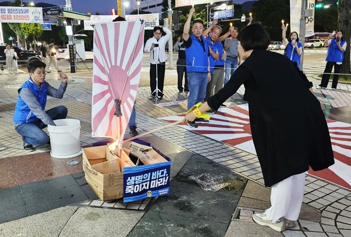 | ¹ÎÁÖ´ç â¿øÀÇâÁö¿ªÀ§¿øÈ¸°¡ 6ÀÏ ¿ÀÈÄ 7½Ã â¿ø ÇѼºôµù ¾Õ ±¤Àå¿¡¼ ÀϺ» Àü¹ü±âÀÎ '¿íÀϱâ'¸¦ ¹â°í Ãкҹ®ÈÁ¦¸¦ ÁøÇàÇϰí ÀÖ´Ù. |
