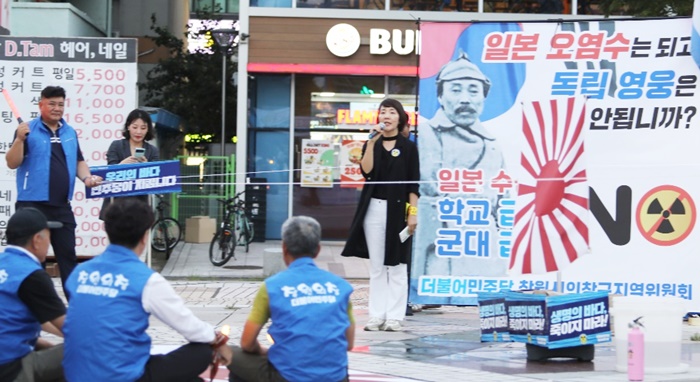 ´õºÒ¾î¹ÎÁÖ´ç â¿øÀÇâÁö¿ªÀ§¿øÈ¸(À§¿øÀå ±èÁö¼ö, ÀÌÇÏ ÀÇâÁö¿ªÀ§)´Â 6ÀÏ ¿ÀÈÄ 7½Ã â¿ø ÇѼºôµù ¾Õ ±¤Àå¿¡¼ '¹ÎÁÖÁÖÀÇ È¸º¹, ìí ÇÙ¿À¿°¼ö ¹æ·ù ±Ôź ÅõÀﺻºÎ Ãкҹ®ÈÁ¦'¸¦ ¿¸é¼ ÀϺ» ¿íÀϱ⸦ ºÒ Å¿ì´Â ÆÛÆ÷¸Õ½º¸¦ ÁøÇàÇß´Ù.