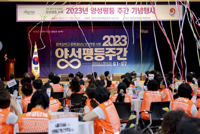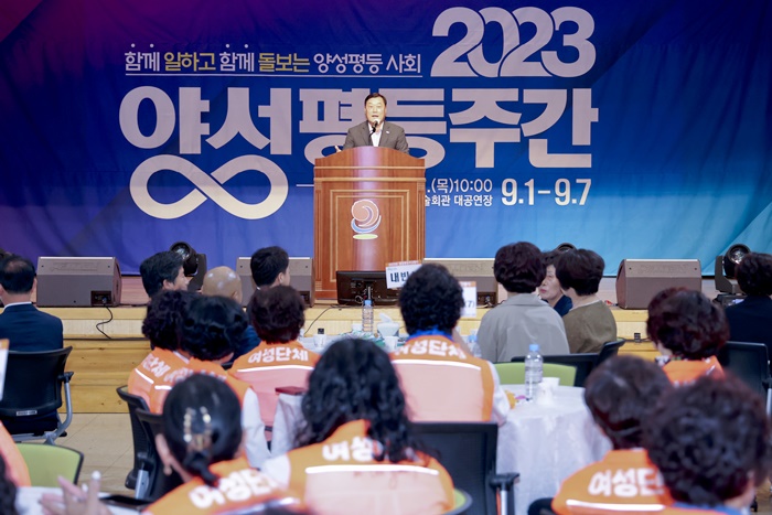 [½Ã»çÄÚ¸®¾ÆÀú³Î=Á¤Á¾¹Î ¼±ÀÓ±âÀÚ] ÇÕõ±º¿©¼º´ÜüÇùÀÇȸ(ȸÀå ÀÌÁ¤ÀÓ)´Â ¾ç¼ºÆòµîÁÖ°£(¸Å³â 9.1.~9.7.)À» ¸ÂÀÌÇØ 7ÀÏ ¹®È¿¹¼úȸ°ü ´ë°ø¿¬Àå¿¡¼ ¿©¼º´Üü ȸ¿ø, À¯°øÀÚ µî 200¿©¸íÀÌ Âü¼®ÇÑ °¡¿îµ¥ ‘2023³â ¾ç¼ºÆòµîÁÖ°£ ±â³äÇà»ç’¸¦ °³ÃÖÇß´Ù.