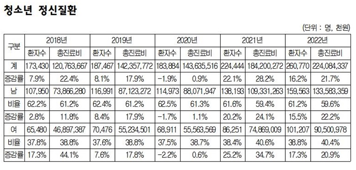 °±âÀ± ÀÇ¿øÀÌ Á¦Ãâ ¹ÞÀº ÀڷḦ ºÐ¼®ÇÑ °á°ú ºÒ¾ÈÀå¾Ö, Ãæµ¿Àå¾Ö, ¿ì¿ïÁõ, Á¶Çöº´ µî Á¤½ÅÁúȯÀ» ¾Î°í ÀÖ´Â 18¼¼ ¹Ì¸¸ û¼Ò³âÀÇ ¼ö°¡ Áö³ÇØ ¹«·Á 26¸¸770¸í¿¡ ´ÞÇÏ´Â °ÍÀ¸·Î ³ªÅ¸³µ´Ù.