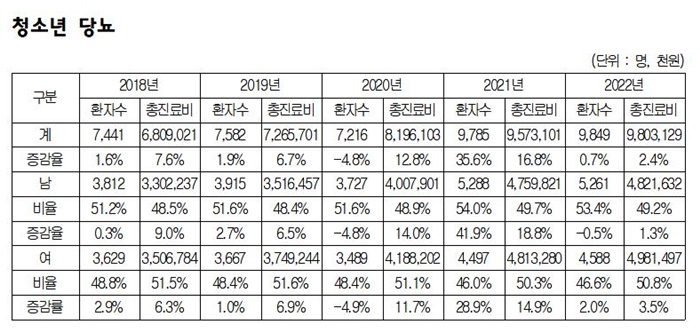 Äڷγª¸¦ °ÅÄ¡¸é¼ 2020³â 7,216¸í¿¡ ºÒ°úÇÏ´ø û¼Ò³â ´ç´¢ ȯÀÚ ¼ö°¡ 2021³â 9,785¸í, 2022³â¿¡ 9,849¸íÀ¸·Î ±ÞÁõÇÑ °ÍÀ¸·Î Á¶»çµÆ´Ù.
