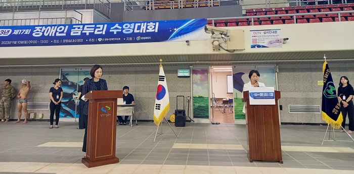 | (»ç)â¿ø½ÃÀå¾ÖÀκθðȸ°¡ ÁÖÃÖÇÑ Á¦17ȸ Àå¾ÖÀΰõµÎ¸®¼ö¿µ´ëȸ°¡ 10ÀÏ Ã¢¿øÁ¾ÇտÀå ½Ç³»¼ö¿µÀå¿¡¼ ¿·È´Ù. |