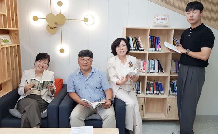 [½Ã»çÄÚ¸®¾ÆÀú³Î=±è¿¬ÇÐ ±âÀÚ] ¿µ¾ç±³À°Áö¿øÃ»(±³À°Àå ±èÀ¯Èñ)Àº 9¿ùºÎÅÍ Ã¥À» ÅëÇÑ ÇູÇÏ°í °ÇÀüÇÑ Á÷Àå¹®È Á¶¼ºÀ» À§ÇØ °æ»óºÏµµ±³À°Ã» ¿µ¾çµµ¼°ü(°üÀå ¼Õ¼öÁø)°ú Çù·ÂÇÏ¿© Á÷¿øµéÀ» À§ÇÑ µ¶¼ °ø°£ ¡¸µ¶¼ ºñŸ¹Î¡¹À» ¿î¿µ ÁßÀÌ´Ù.