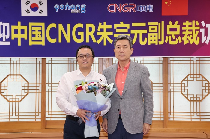 [½Ã»çÄÚ¸®¾ÆÀú³Î=°æºÏÃëÀ纻ºÎ] ±Û·Î¹ú Àü±¸Ã¼ ¼±µµ±â¾÷ÀÎ Áß±¹ CNGR ÁÖÁ¾À§¿£ ºÎȸÀå ÀÏÇàÀº Áö³ 14ÀÏ Æ÷Ç׽ø¦ ¹æ¹®ÇØ À̰´ö Æ÷Ç×½ÃÀå ¹× °ü·ÃºÎ¼ ±¹·°úÀåµéÀ» ¸¸³ª »ó»ý Çù·Â ¹æ¾È¿¡ ´ëÇØ ³íÀÇÇß´Ù.