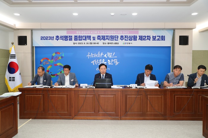 [½Ã»çÄÚ¸®¾ÆÀú³Î=±è¿¬ÇÐ ±âÀÚ] ¾Èµ¿½Ã(½ÃÀå ±Ç±ââ)´Â Ãß¼® ¿¬ÈÞ(9. 28. ∼ 10. 3.)¸¦ ¸Â¾Æ ½Ã¹Î°ú ±Í¼º°´ÀÌ Æí¾ÈÇÏ°í ¾ÈÀüÇÑ ¸íÀýÀ» º¸³¾ ¼ö ÀÖµµ·Ï 2023³â Ãß¼® ¸íÀý ´ëºñ Á¾ÇÕ´ëÃ¥À» ÃßÁøÇÑ´Ù.