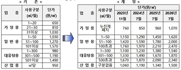 °¡Á¤¿ë¿ä±ÝÀÇ °æ¿ì Àü±¹ÀûÀÎ Ãß¼¼¿¡ µû¶ó ´ÙÀΰ¡±¸¿¡ ºÒ¸®ÇÑ ´©ÁøÁ¦ ÆóÁö(¿ä±Ý´ÜÀÏÈ)·Î Åæ´ç ´Ü°¡ 650¿ø¿¡¼ 680¿øÀ¸·Î Á¶Á¤ ÈÄ 12%, ÀϹݿë°ú ´ëÁßÅÁ¿ë, »ê¾÷¿ëÀº ±âÁ¸ ´Ü°¡¿¡¼ ¸Å³â 12% ÀλóÀ²ÀÌ Àû¿ëµÈ´Ù.