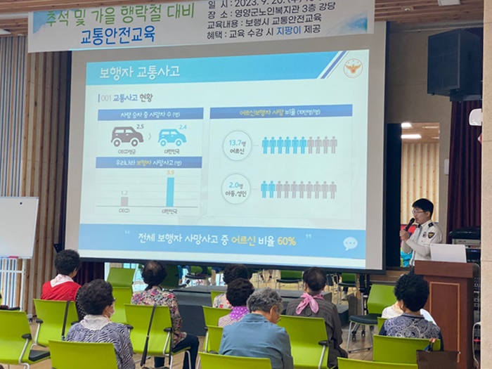 [½Ã»çÄÚ¸®¾ÆÀú³Î=±è¿¬ÇÐ ±âÀÚ] ¿µ¾ç±º³ëÀκ¹Áö°ü(°üÀå ÀÌ»ó·Ï)Àº 20ÀÏ º¹Áö°ü °´ç¿¡¼ ¿µ¾ç°æÂû¼ ±³Åë°è¿Í ¿¬°èÇÏ¿© ÀÌ¿ë ¾î¸£½ÅµéÀ» ´ë»óÀ¸·Î º¸Çà¾ÈÀü±³À°À» Æ÷ÇÔÇÑ Æ÷°ýÀûÀÎ ±³Åë¾ÈÀü±³À°À» ½Ç½ÃÇß´Ù.