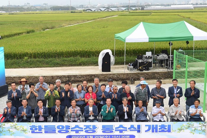 »ç¾÷ºñ´Â 2023³â º»¿¹»ê 22¾ï ¿øÀ» Æí¼ºÇØ ¿ÃÇØ 1¿ùºÎÅÍ 8¿ù±îÁö ÁøÇàÇßÀ¸¸ç, ¾ÈÁ¤ÀûÀÎ ³ó¾÷¿ë¼ö¸¦ È®º¸Çϱâ À§ÇØ 60¸¶·ÂÀÇ ¼öÁß ¸ðÅÍ 2´ë¸¦ ¼³Ä¡ÇÏ°í ¼Û¼ö°ü·Î 2.8km¸¦ ¾Æ¸²°íµîÇб³ ¿· µî 4°÷ÀÇ ¹èÃⱸ·Î ¿¬°áÇØ 1ºÐ´ç 4Åæ, 1ÀÏ 5,700¸¸ ÅæÀÇ ¾ç¼ö ´É·ÂÀÇ ½Ã¼³À» °®Ãá ¾ç¼öÀåÀ» ¼³Ä¡Çß´Ù.