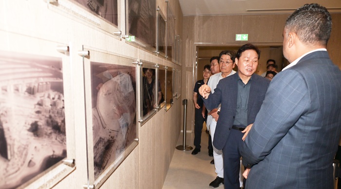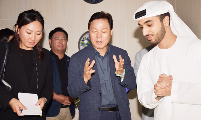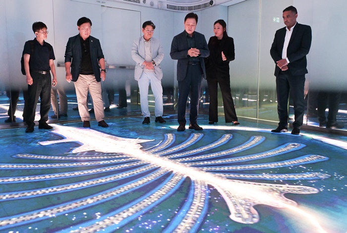 [½Ã»çÄÚ¸®¾ÆÀú³Î=Á¤Á¾¹Î ¼±ÀÓ±âÀÚ] °æ³²µµ(µµÁö»ç ¹Ú¿Ï¼ö)´Â 19ÀÏ °æ³²ÀÇ ¹Ì·¡µµ½Ã¸¦ ±¸»óÇÏ°í ¿ìÁÖÇ×°ø»ê¾÷°ú ¿ìÁÖÇ×°ø º¹ÇÕµµ½ÃÀÇ ¹Ì·¡ºñÀü ¹æ¾ÈÀ» ¸ð»öÇϱâ À§ÇØ ¾Æ¶ø¿¡¹Ì¸®Æ®(UAE) µÎ¹ÙÀÌ¿¡ À§Ä¡ÇØ ÀÖ´Â ³ªÅ³»ç¿Í ¹Ì·¡¹Ú¹°°üÀ» ¹æ¹®Çß´Ù.