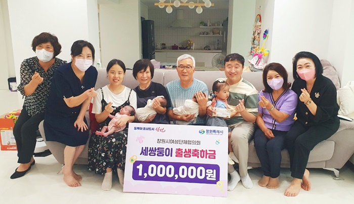 °¿µÀÓ Ã¢¿ø½Ã¿©¼º´ÜüÇùÀÇȸ ȸÀåÀº “¼¼½ÖµÕÀÌ Åº»ýÀ̶ó´Â °æ»ç½º·¯¿î ¼Ò½Ä¿¡ ¸¶³É ±â»Ú°í, ¾ÆÀÌ¿Í ºÎ¸ð, ÇҾƹöÁö ÇҸӴϰ¡ ÇÔ²² »ç´Â ´ë°¡Á·À» ¿À·£¸¸¿¡ ºÁ¼ ´õ ¹Ý°©°í »ÑµíÇÏ´Ù”¸é¼ “¼¼½ÖµÕÀ̸¦ Æ÷ÇÔÇÑ ³× ¾ÆÀ̸¦ Àß Å°¿ì±â¸¦ ¹Ù¶õ´Ù”°í ÀüÇß´Ù.