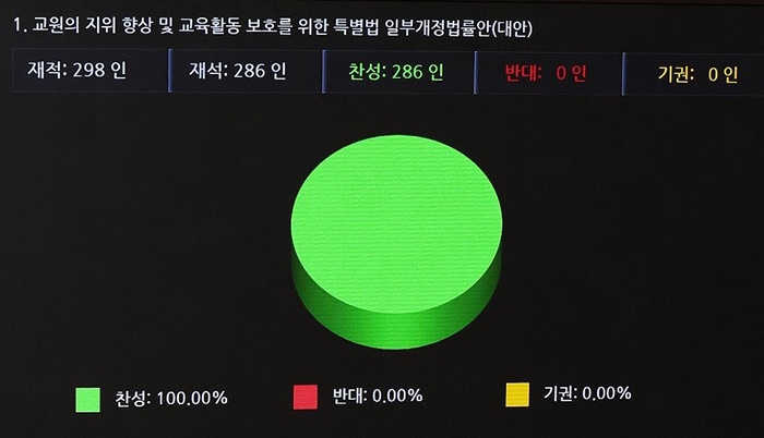 ±³¿øÁöÀ§¹ýÀÇ °æ¿ì Àç¼® 286¸í Áß 286¸íÀÌ Âù¼ºÇ¥¸¦ ´øÁ® ¿©¾ß ¸¸ÀåÀÏÄ¡·Î Åë°úÇß´Ù.
