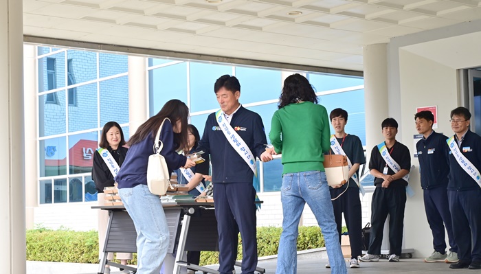 [½Ã»çÄÚ¸®¾ÆÀú³Î=±è¿¬ÇÐ ±âÀÚ] û¼Û±º(±º¼ö À±°æÈñ)Àº 22ÀÏ ¾ÆÄ§ ±ºÃ» Çö°ü ÀÔ±¸¿¡¼ Ãâ±ÙÇÏ´Â Á÷¿øµéÀ» ´ë»óÀ¸·Î û·Å Ä·ÆäÀÎÀ» ÆîÃÆ´Ù.