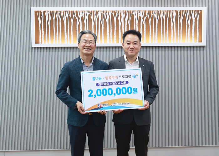[½Ã»çÄÚ¸®¾ÆÀú³Î=±è¿¬ÇÐ ±âÀÚ] K-water °æºÏÁö¿ªÇù·Â´Ü(´ÜÀå ¾ç½Â°æ)Àº 25ÀÏ '¹°³ª´®×ÇູµÎ¹è' ÇÁ·Î±×·¥ÀÇ ÀÏȯÀ¸·Î ¼öµµ¿ä±Ý °¨¸é ÇýÅÃÀ» ¹ÞÁö ¸øÇÏ´Â ¿µ¾ç±º Ãë¾à°èÃþ¿¡ ¼öµµ¿ä±Ý Áö¿ø±ÝÀ» Àü´ÞÇß´Ù.