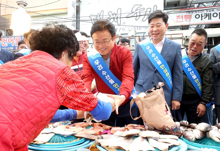¾ÈÀüÇÑ ¿ì¸® ¼ö»ê¹° ¼Òºñ ÃËÁøÀ» À§ÇØ µ¿ÇØ¾È °æºÏ ´ëÇ¥ ¼ö»ê¹°ÀÎ ¿À¡¾î¸¦ ºñ·ÔÇÑ µ¹¹Ì¿ª, ´Ù½Ã¸¶, °¡ÀÚ¹Ì, °íµî¾î µîÀ» ¼Õ¼ö ±¸ÀÔÇß´Ù.