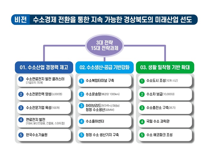 °æºÏµµ´Â ‘¼ö¼Ò°æÁ¦ ÀüȯÀ» ÅëÇÑ Áö¼Ó °¡´ÉÇÑ °æ»óºÏµµÀÇ ¹Ì·¡»ê¾÷ ¼±µµ’¶ó´Â ºñÀüÀ» Á¦½ÃÇϰí, 3´ë ÃßÁøÀü·«À¸·Î ❶¼ö¼Ò»ê¾÷ °æÀï·Â Á¦°í ❷¼ö¼Ò»ý»ê·°ø±Þ ±â¹Ý °È ❸»ýȰ ¹ÐÂøÇü ±â¹Ý È®´ë·Î Á¤Çϰí 15´ë Àü·«°úÁ¦¸¦ ¼ö¸³ÇØ Áö¿ª °£ ±ÕÇü ÀÖ´Â ¼ö¼Ò »ê¾÷À» À°¼ºÇØ ³ª°£´Ù´Â °èȹÀÌ´Ù.
