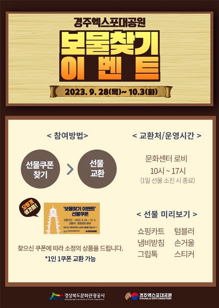 °æ»óºÏµµ¹®È°ü±¤°ø»ç(»çÀå ±è¼ºÁ¶, ÀÌÇÏ °ø»ç) °æÁÖ¿¢½ºÆ÷´ë°ø¿øÀº Ãß¼®¿¬ÈÞ ±â°£ÀÎ 28ÀϺÎÅÍ 10¿ù 3ÀϱîÁö °ø¿ø °ü¶÷°´µéÀ» ´ë»óÀ¸·Î ‘ÇѰ¡À§ º¸¹°Ã£±â’ À̺¥Æ®¸¦ ÁøÇàÇÑ´Ù°í ¹àÇû´Ù.