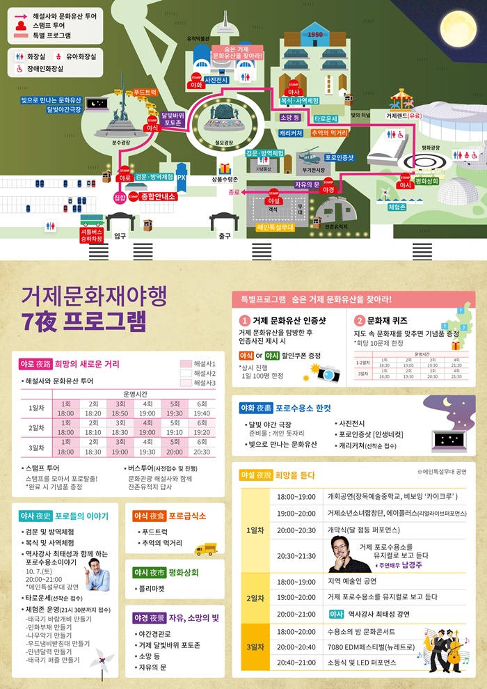dz¼ºÇÑ °ø¿¬(¾ß¼³)»Ó¸¸ ¾Æ´Ï¶ó Çà»ç±â°£ ³»³» ¡â¾ß°æ(¾ß°£°æ°ü, ´Þºû¹ÙÀ§ Æ÷ÅäÁ¸, ÀÚÀ¯ÀÇ ¹®) ¡â¾ß»ç(°Ë¹® ¹× ¹æ¿ªÃ¼Çè, º¹½Ä ¹× »ç¿ªÃ¼Çè, Ÿ·Î¿î¼¼, ¸¸µé±â üÇè 6Á¾) ¡â¾ß·Î(½ºÅÆÇÁÅõ¾î, ÇØ¼³»ç¿Í ¹®ÈÀ¯»êÅõ¾î) ¡â¾ß½Ä(Ãß¾ïÀÇ ¸Ô°Å¸® µî) ¡â¾ß½Ã(Çø®¸¶ÄÏ) ¡â¾ßÈ(´Þºû ¾ß°£ ±ØÀå, Æ÷·ÎÀÎÁõ¼¦, ij¸®Ä¿ÃÄ) µî ´Ù¾çÇÑ Ã¼Çè°ú À̺¥Æ®°¡ ÁøÇàµÈ´Ù.