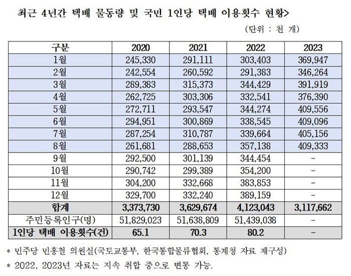 2023³â 1¿ùºÎÅÍ 8¿ù±îÁö ÅÃ¹è ¹°µ¿·®Àº 2020³â ´ëºñ 44.6%°¡ ÆøÁõÇß´Ù.