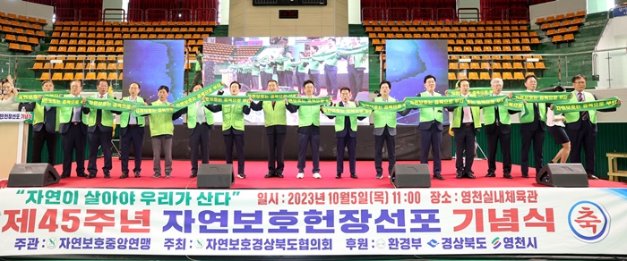 [½Ã»çÄÚ¸®¾ÆÀú³Î=±è¿¬ÇÐ ±âÀÚ] °æºÏµµ´Â 5ÀÏ ¿µÃµ½Ç³»Ã¼À°°ü¿¡¼ ÀÌö¿ì °æºÏµµÁö»ç, ¹èÇÑö °æºÏµµÀÇȸ ÀÇÀå, Ãֱ⹮ ¿µÃµ½ÃÀå, ÀÌ»ó¸í ÀÚ¿¬º¸È£Áß¾Ó¿¬¸Í ÃÑÀç, ÃÖ¼ºÀ± ÀÚ¿¬º¸È£°æ»óºÏµµÇùÀÇȸÀåÀ» ºñ·ÔÇØ Àü±¹ ÀÚ¿¬º¸È£ÇùÀÇȸ ȸ¿ø µî 2,000¿© ¸íÀÌ Âü¼®ÇÑ °¡¿îµ¥ ‘Á¦45ÁÖ³â ÀÚ¿¬º¸È£ÇåÀå ¼±Æ÷±â³ä½Ä’À» °³ÃÖÇß´Ù°í ¹àÇû´Ù.
