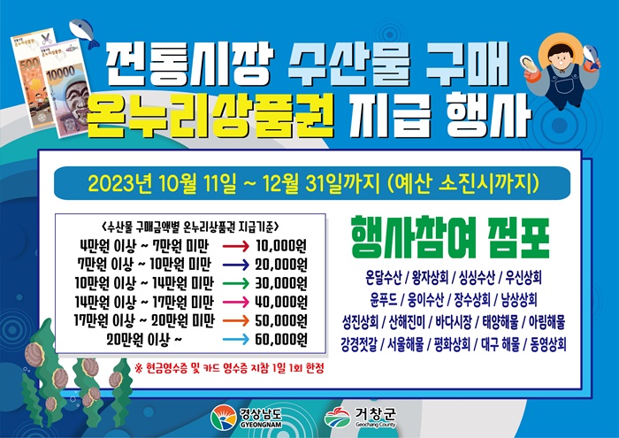 [½Ã»çÄÚ¸®¾ÆÀú³Î=Á¤Á¾¹Î ¼±ÀÓ±âÀÚ] °ÅⱺÀº °ÅâÀüÅë½ÃÀå ¼ö»ê¹° ¼Òºñ ÃËÁø°ú Ȱ¼ºÈ¸¦ À§ÇØ ¿À´Â 11ÀϺÎÅÍ ¿¹»ê ¼ÒÁø ½Ã±îÁö ÀüÅë½ÃÀå ¼ö»ê¹°À» ±¸¸ÅÇÏ¸é ¿Â´©¸® »óǰ±ÇÀ» Áö±ÞÇÏ´Â Çà»ç¸¦ ÁøÇàÇÑ´Ù.