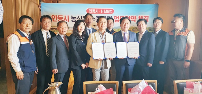 [½Ã»çÄÚ¸®¾ÆÀú³Î=±è¿¬ÇÐ ±âÀÚ] ¾Èµ¿½Ã°¡ 11ÀÏ(ÇöÁö½Ã°£) ¹Ì±¹ ÃÖ´ë Çѱ¹ ³ó½Äǰ ¹× ¾Æ½Ã¾È ½Äǰ À¯Åë¾÷üÀÎ H¸¶Æ® LAºÎ¿¡³ªÆÄÅ©Á¡À» ã¾Æ ¾Èµ¿ ³ó½ÄǰÀÇ ¹Ì±¹½ÃÀå ¼öÃâÈ®´ë¸¦ À§ÇÑ ¾÷¹«Çù¾à(MOU)À» ü°áÇß´Ù.