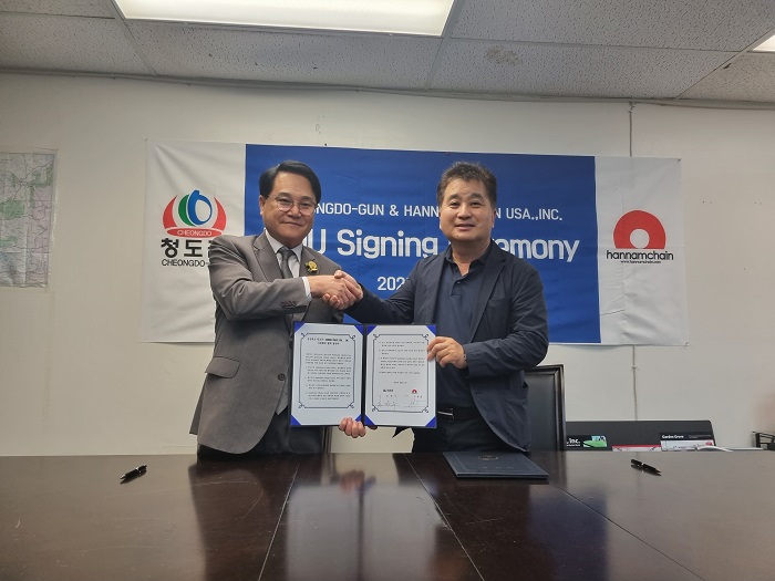 ù³¯ ±èÇϼö ûµµ±º¼ö¿Í Çѳ²Ã¼ÀÎUSA ±¸Á¤¿Ï ´ëÇ¥´Â MOU¸¦ ü°áÇÏ¸é¼ Ã»µµ±ºÀº ¿ì¼öƯ»ê¹°ÀÇ ¾ÈÁ¤Àû °ø±ÞÀ», Çѳ²Ã¼ÀÎUSA´Â À¯Åë ¹× ÆÇ¸Å³ëÇϿ츦 Ȱ¿ëÇÑ »óǰÀ¯Åëä³ÎÀÇ È®º¸·Î½á ¹ÌÁÖÁö¿ª¿¡ ûµµ±º ¿ì¼ö³óƯ»ê¹° ¼öÃâ È®´ë¸¦ À§ÇÑ »óÈ£Çù·ÂÀ» ¾à¼ÓÇß´Ù.