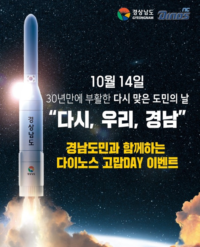 °æ³²µµ¿Í NC ´ÙÀ̳뽺´Â 1993³â ÆóÁö ÀÌÈÄ 30³â ¸¸¿¡ ºÎȰÇÑ °æ³²µµ¹ÎÀÇ ³¯(10¿ù 14ÀÏ)À» ±â³ä·È«º¸Çϱâ À§ÇØ NC ´ÙÀ̳뽺ÀÇ È¨ ÃÖÁ¾Àü°ú ¿¬°èÇÑ ‘°æ³²µµ¹Î ±×¸®°í ´ÙÀ̳뽺 °í¸¿DAY’ À̺¥Æ®¸¦ ±âȹÇßÀ¸¸ç µµ¹Î ƼÄÏ ÇÒÀÎÀ» ºñ·ÔÇÑ ´Ù¾çÇÑ À̺¥Æ®¸¦ ÃßÁøÇÑ´Ù.