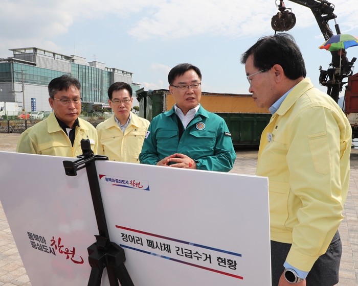 È« ½ÃÀåÀº ¸¶»êÇ× ÇØ¾ç½Åµµ½Ã ÀÏ´ë ¹ß»ýÇÑ Á¤¾î¸® Áý´ÜÆó»ç¿¡ µû¶ó Àη°ú Àåºñ¸¦ µ¿¿øÇØ ¼ö°Å ÀÛ¾÷ÁßÀÎ ÇöÀåÀ» ¹æ¹®ÇØ ³ë°í¸¦ °Ý·ÁÇÏ¸é¼ Á÷Á¢ ¼ö°ÅȰµ¿À» ÆîÄ¡´Â°¡ Çϸé, ½Ã¹ÎºÒÆí ÃÖ¼Òȸ¦ À§ÇÑ ½Å¼ÓÇÑ ¼ö°Å·Ã³¸®¸¦ ´çºÎÇϱ⵵ Çß´Ù.